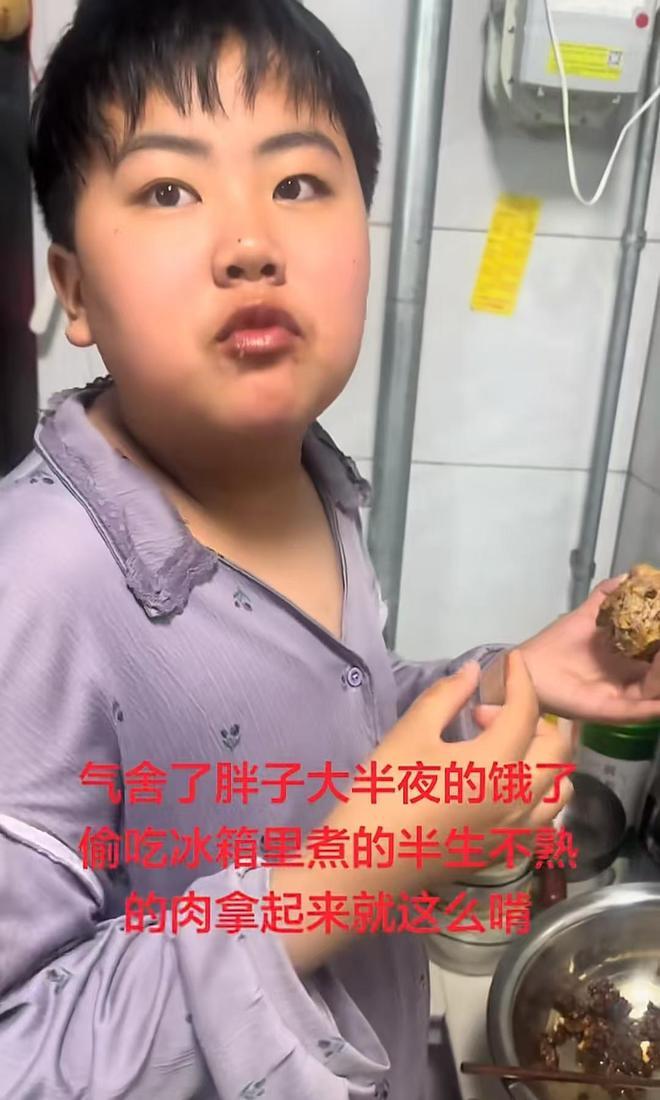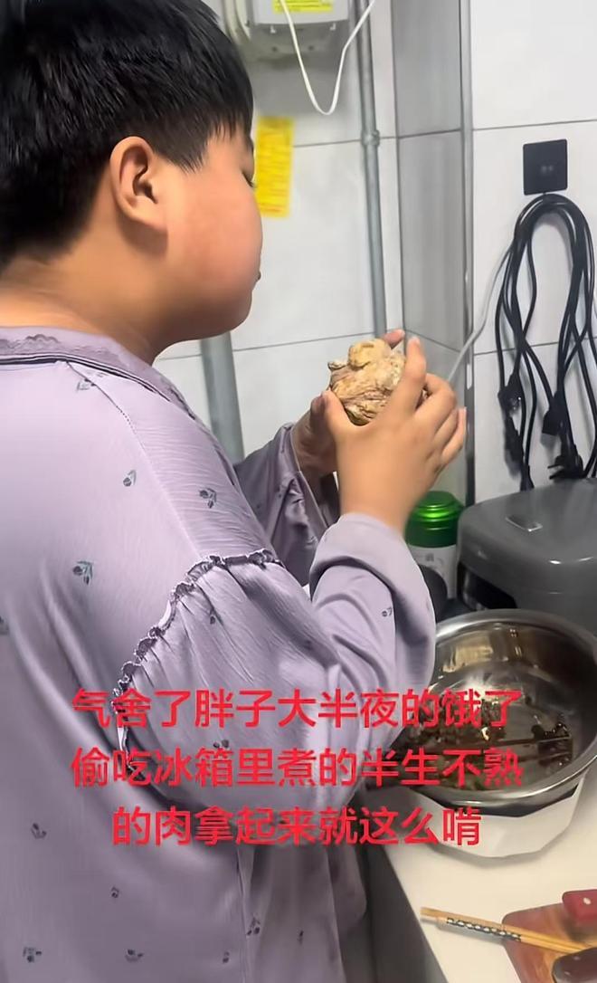 笔者先是刷到了这个男孩半夜偷吃肉的视频,文案写道:大半夜饿了偷吃冰箱里煮的半生不熟的肉,拿起来就这么啃,看视频这个肉应该是焯水后准备第二天再加工的。