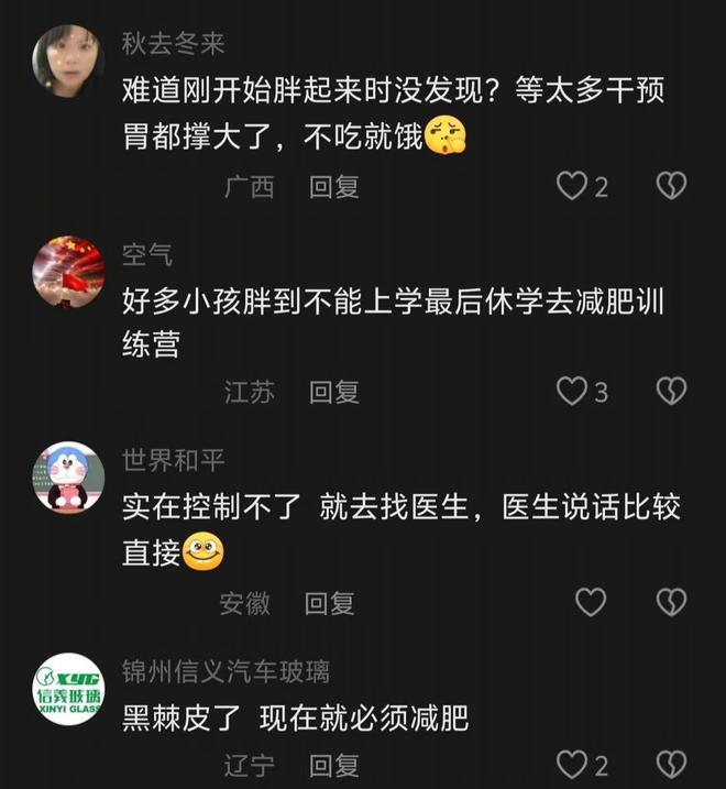 可令人无奈的是,几乎每一条视频底下,都有热心网友看透真相,提醒网友给孩子减肥,可家长却不以为意,依旧纵容孩子偷吃,偶尔发一条视频吐槽孩子太胖了,其余的什么都没有做。